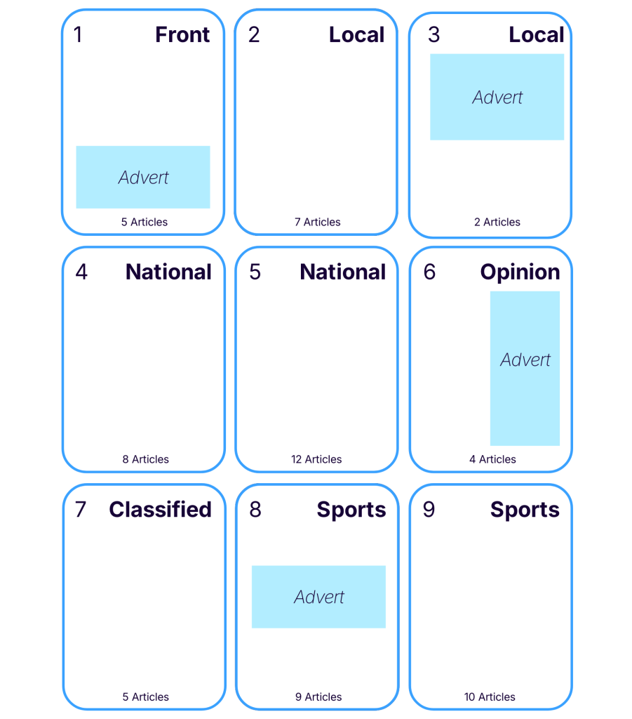 Traditional digital newspaper publishing faces an impossible equation: create newspaper-quality layouts across hundreds of pages, multiple sections, and constantly updating content feeds – all while maintaining brand consistency, managing article jumps, handling overflow, and respecting pagination rules. It’s a process that typically takes skilled designers hours or even days.