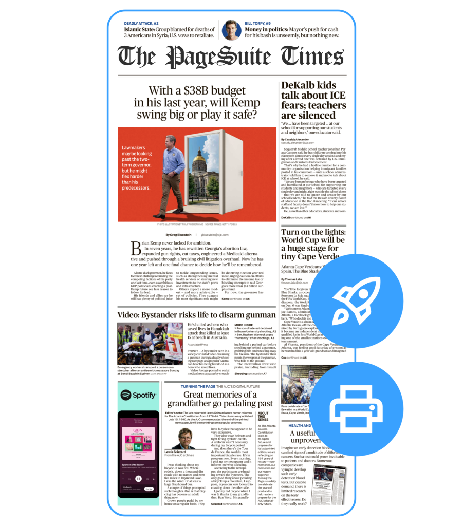 This isn’t just automation – it’s transformation. Whether you’re producing eight pages or two hundred, the engine scales effortlessly while providing full transparency into why each layout was chosen. Simply connect your feeds, import your templates, and let PageSuite do the rest. From breaking news updates to daily print editions, PageSuite empowers publishers to maintain exceptional design quality while meeting even the tightest deadlines.
