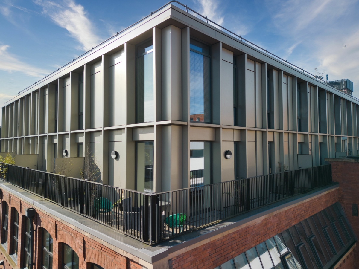 Main works comprised of built up felt roofing, bespoke aluminium rainscreen façade with feature fin detailing and architectural aluminium works.